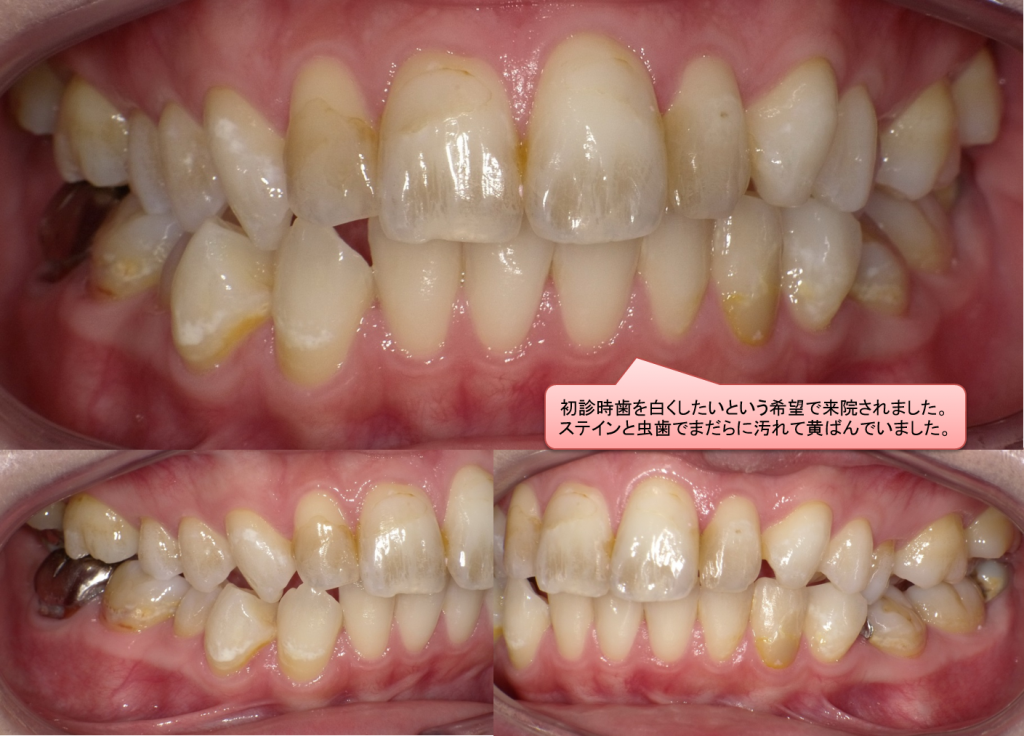 もともと永久歯はイエローアイボリーと言われる黄色がかった色をしています。汚く見えているわけではありませんが、現代では歯はもともと白いものというイメージが浸透しており、ホワイトニングをした白い歯と比べると、汚く見えてしまうかもしれません。さらに歯をきれいにしてみたい方は、ホワイトニングがお勧めです。