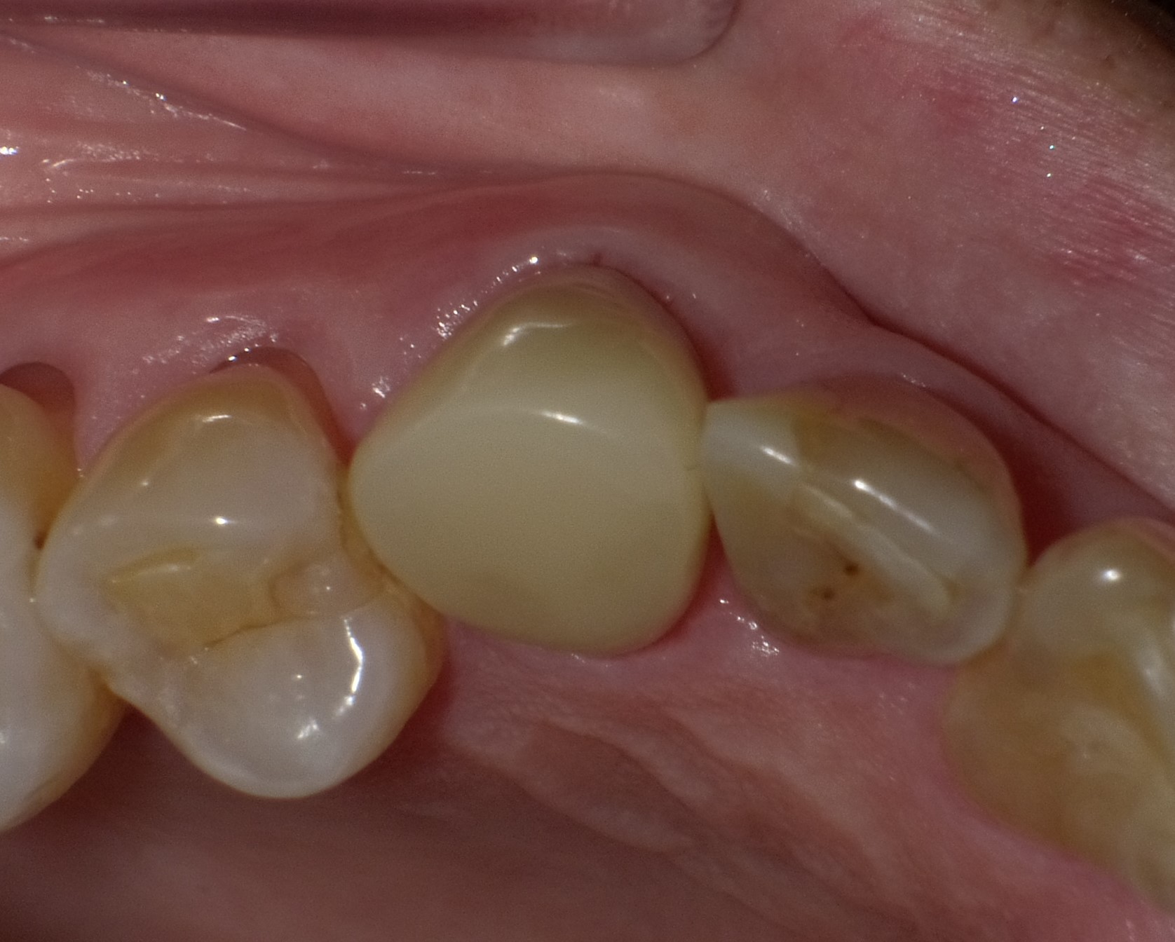 虫歯が大きく、その部分を取り除いたあと歯が少ししか残らない場合などにこの治療法を用います。歯にセラミックの冠を被せますので、ラミネートべニアより歯の形や大きさ、色調ともに表現の自由度が格段に広がりますが、歯を削る量は、それだけ多くなります。