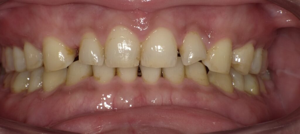 歯と歯の間を前歯の虫歯治療に使用するコンポジットレジンを用いて行う方法です。